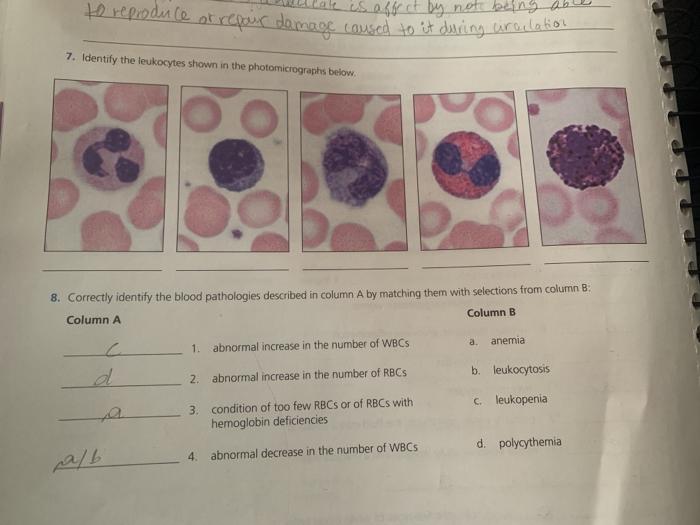 Our solutions are written by Chegg experts so you can be assured of the highest quality. Correctly identify the blood pathologies described in column A by matching them with selections from column B. 8 identify the blood pathologies described in column A by matching them with selections from column B.